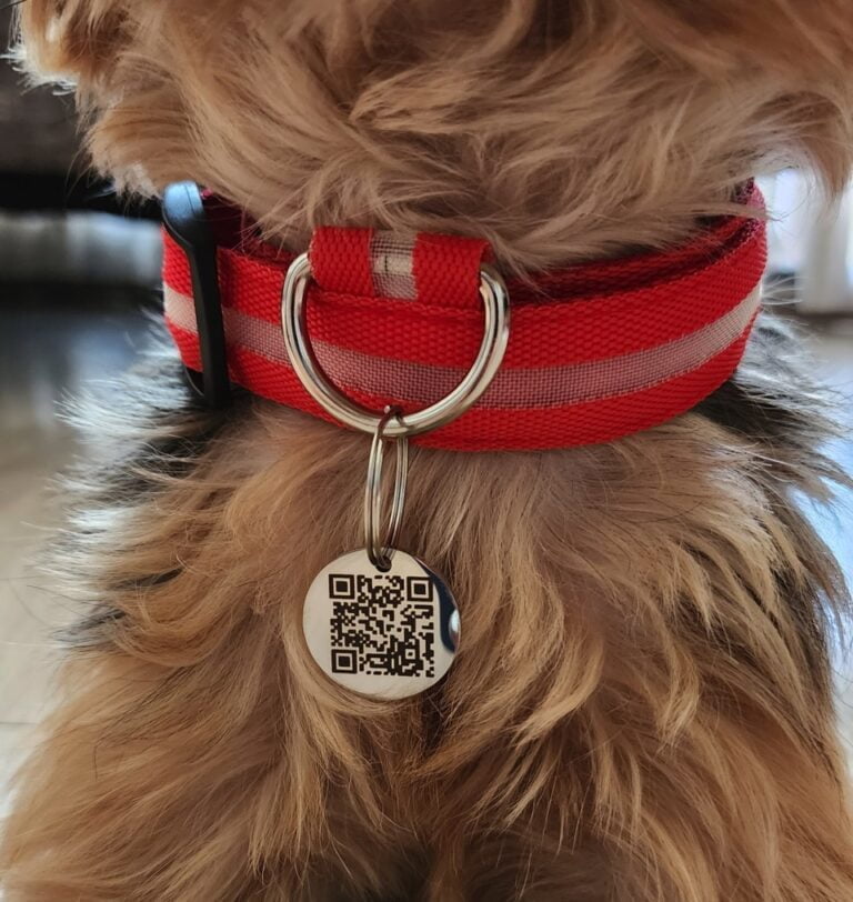 Para Perros: Plaquita Inteligente QR Silenciosa, mantén la identificación de tu perro firme y siempre en su lugar. Se ajusta a cualquier correa gracias a su material de silicona flexible y resistente con su acero inoxidable. La plaquita se mantendrá firme y sin emitir molestos ruidos para tu mascota.