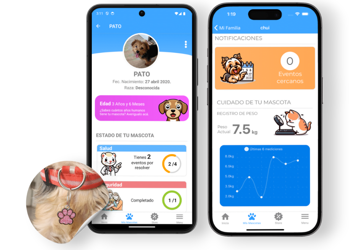 Puedo gestionar sus vacunas, recordatorios y más desde mi teléfono. La plaquita QR es indispensable, especialmente para mi perro que le gusta escaparse.